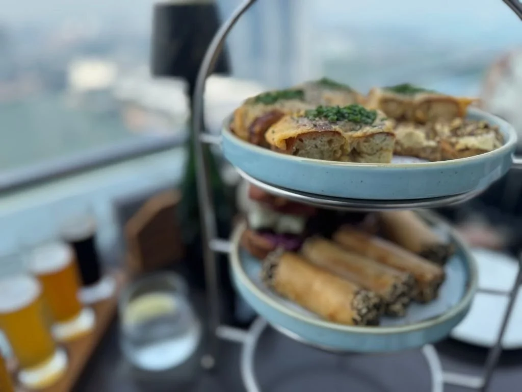 Aside from the view, this was the highlight. We opted for the “High Beer”, which runs much like a traditional afternoon tea—just with beer. A tasting paddle of five pours (four core beers and one seasonal) is paired with a tiered selection of savoury and sweet dishes.